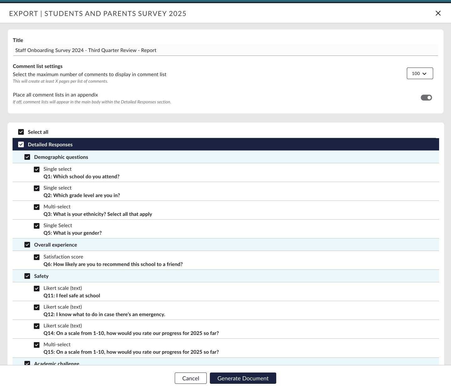 Before designing the interface, I analyzed how competing platforms presented survey results, dashboards, and reporting tools. This helped identify patterns for data clarity, hierarchy, and export functionality. There was a clear need for as much customization as possible when exporting results.
