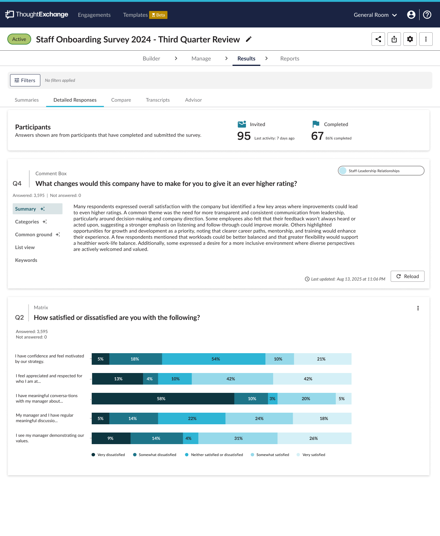 As a result, many customers were using ThoughtExchange to collect feedback, but turning to third-party tools like Panorama to analyze and present results — breaking the end-to-end experience the platform aimed to provide.