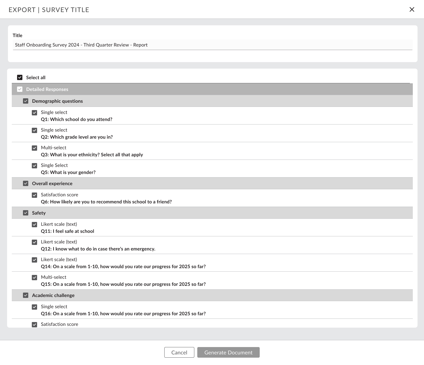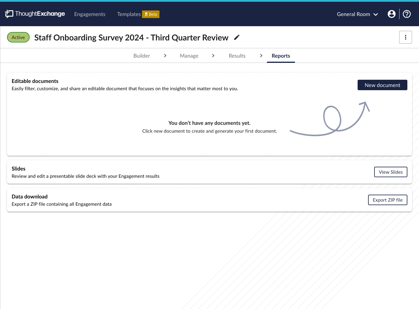 I partnered closely with Product Managers to understand how results functionality would be rolled out over time. This helped prioritize which analytics and visualizations would deliver the most immediate value for leaders – and address the needs for the final stage of reporting, exporting, generating results and sharing with their participants..