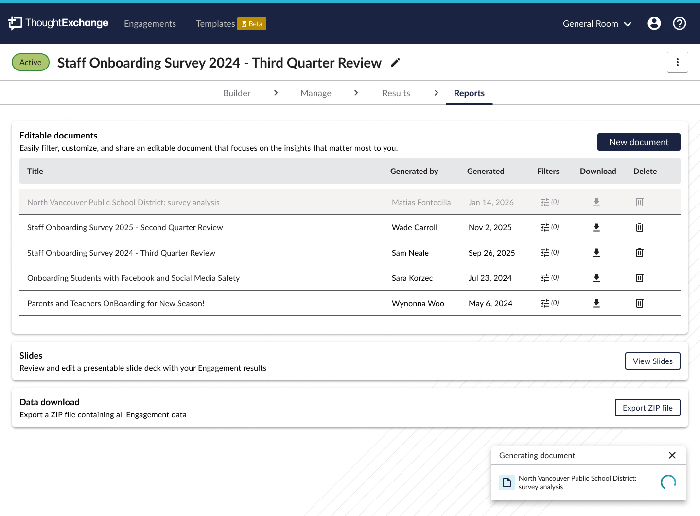 More importantly, leaders had no simple way to generate (export) reports or share results with participants or export reports for broader distribution.
